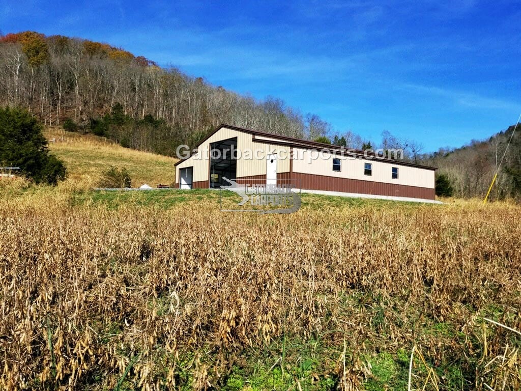 Our big metal barns come in sizes up to 90 feet wide and our metal buildings come in sizes up to 32′, 34′, 36′, 38′, 40′, 42′, 44′, 46′, 48′, 50′, 52′, 54′, 56′, 58′, 60′ wide. Our metal barns and metal garage lengths start at a foot print on the ground of 20′, 25′, 30′, 35′, 40′, 45′ and 50′ long.