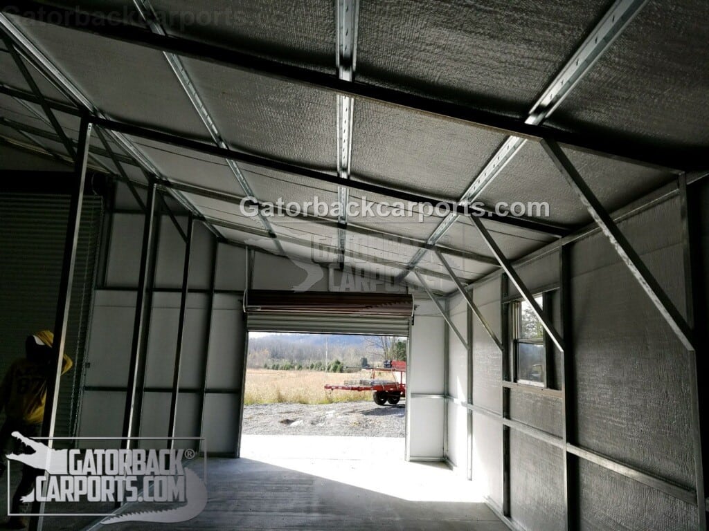 We focus on selling Large metal buildings, steel pre-engineered buildings for our customers who need to purchase a bigger building. Our Clear span width is up to 60 feet wide but on barns including the lean to’s we can build up to 90 feet wide. gutters. We offer insulation packages also in fiberglass and bubble wrap style. Even though we offer this insulation as a package with your building some customers may choose to use closed cell spray foam insulation which is another way to insulate your building adding and achieving an energy efficient building.