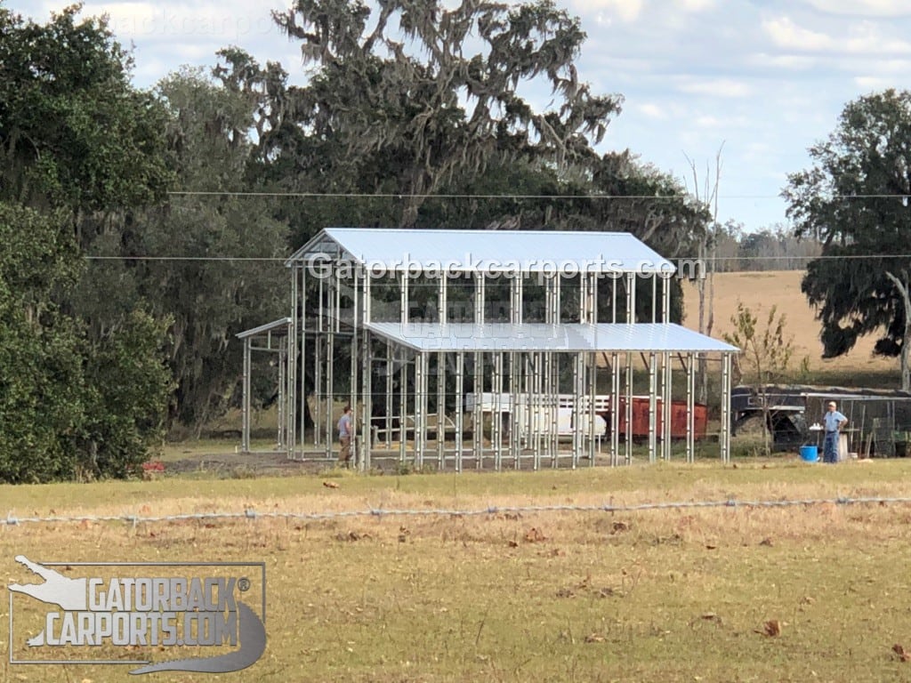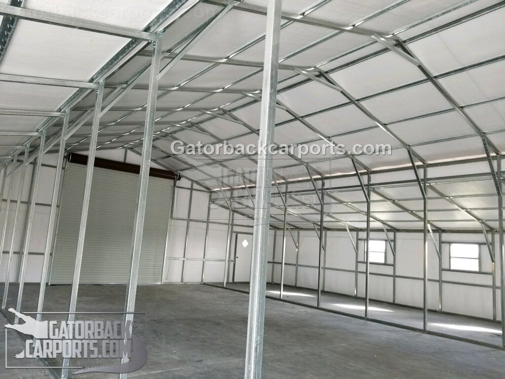 Did you know that these size steel frame structures are often being utilized today as a steel frame home? Yes, and by completing partition walls along with the remaining building components you can have a home built at a modest price. You are going to need to build your interior walls out of wood framing for the interior walls or we sell 2 1/2 galvanized tubing by the foot. You may purchase light gauge steel framing at local commercial contractor’s office. If you are considering this option please provide for us the complete design and layout including the room sizes so that we can include a total price for your building.