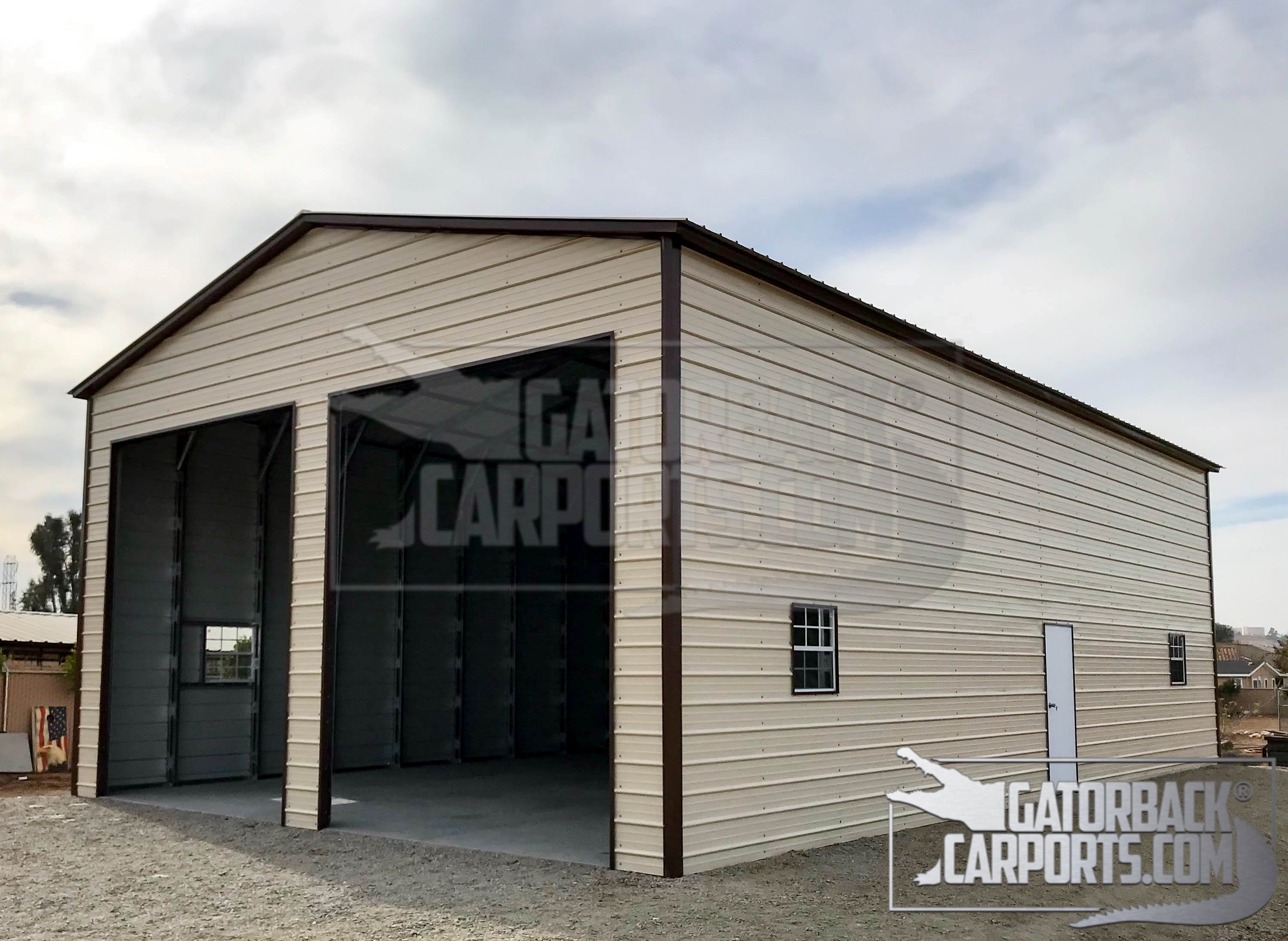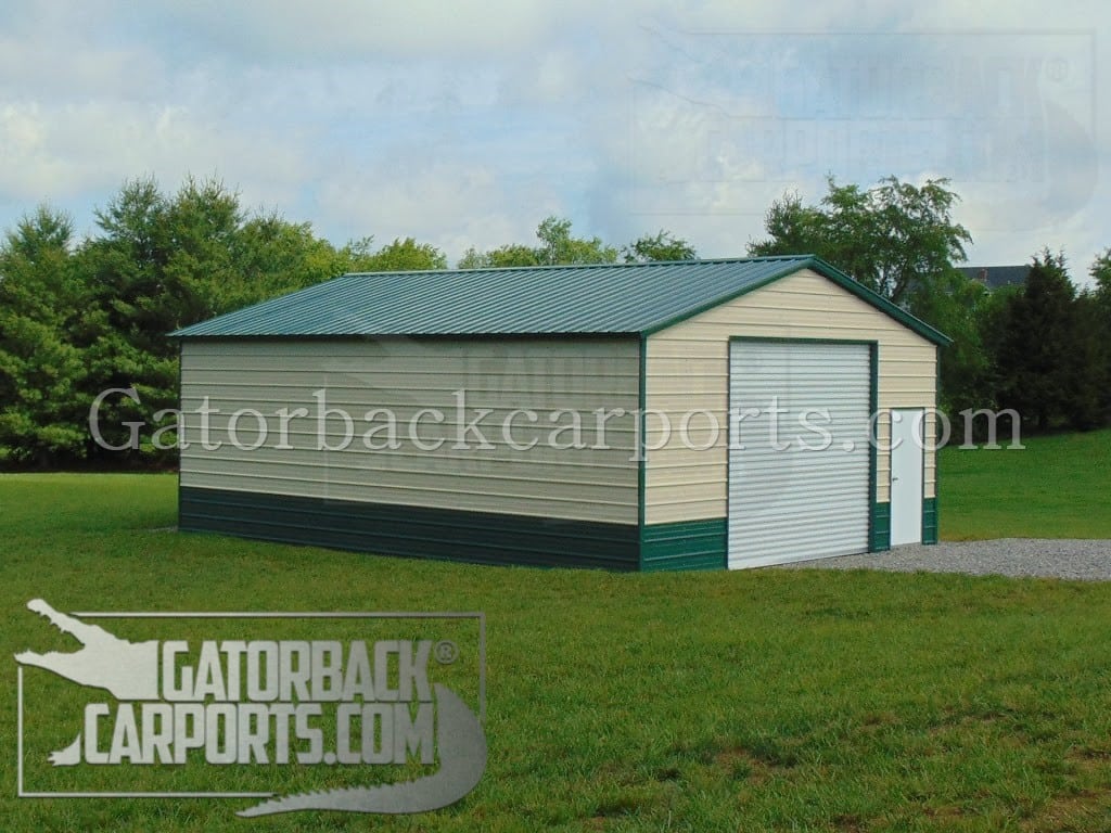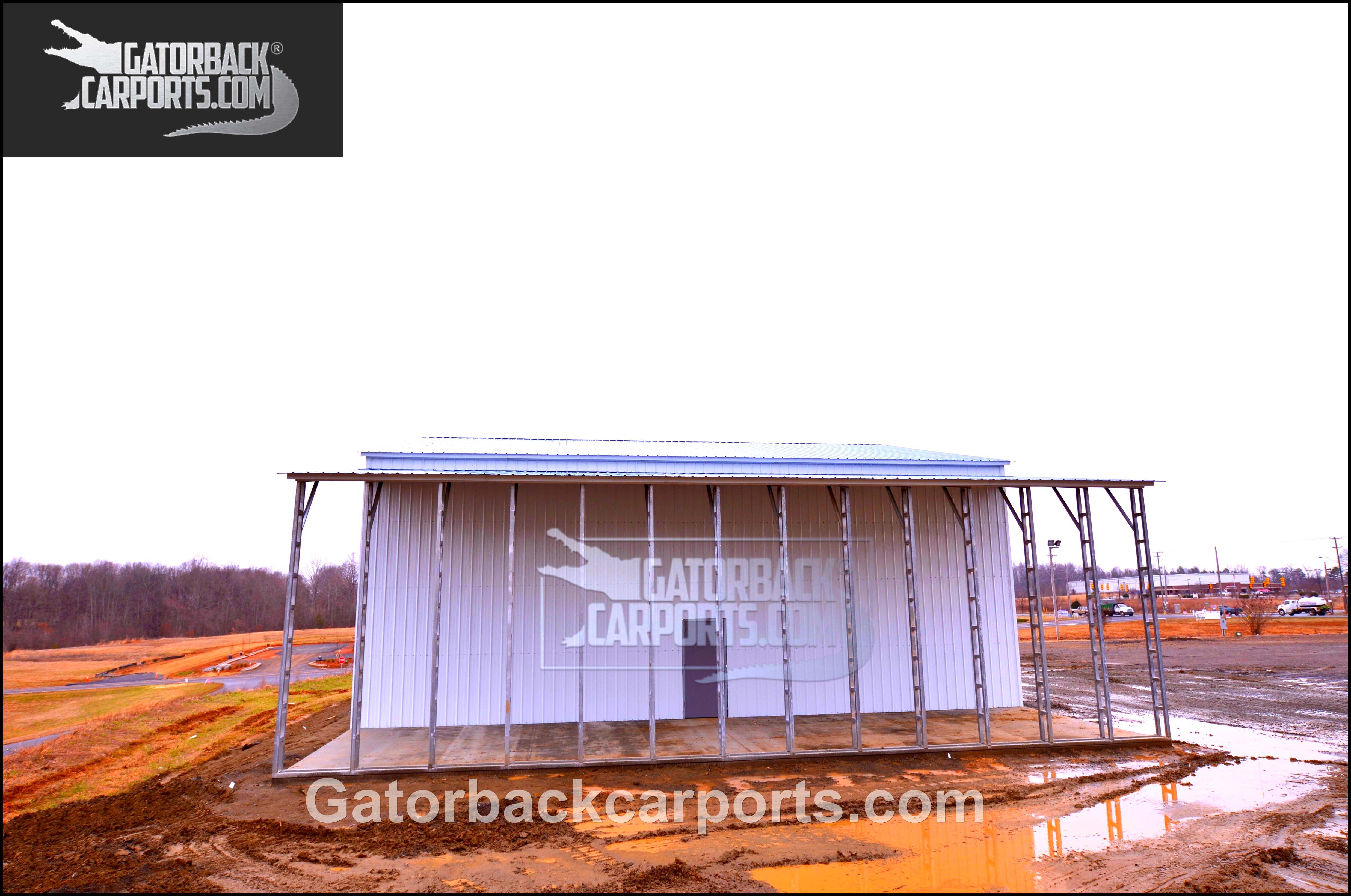 Buildings are able to be purchased with roof only as a carport, and sides open, or as a garage, with side and ends enclosed