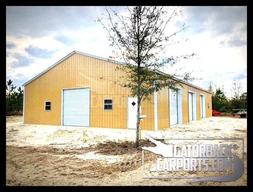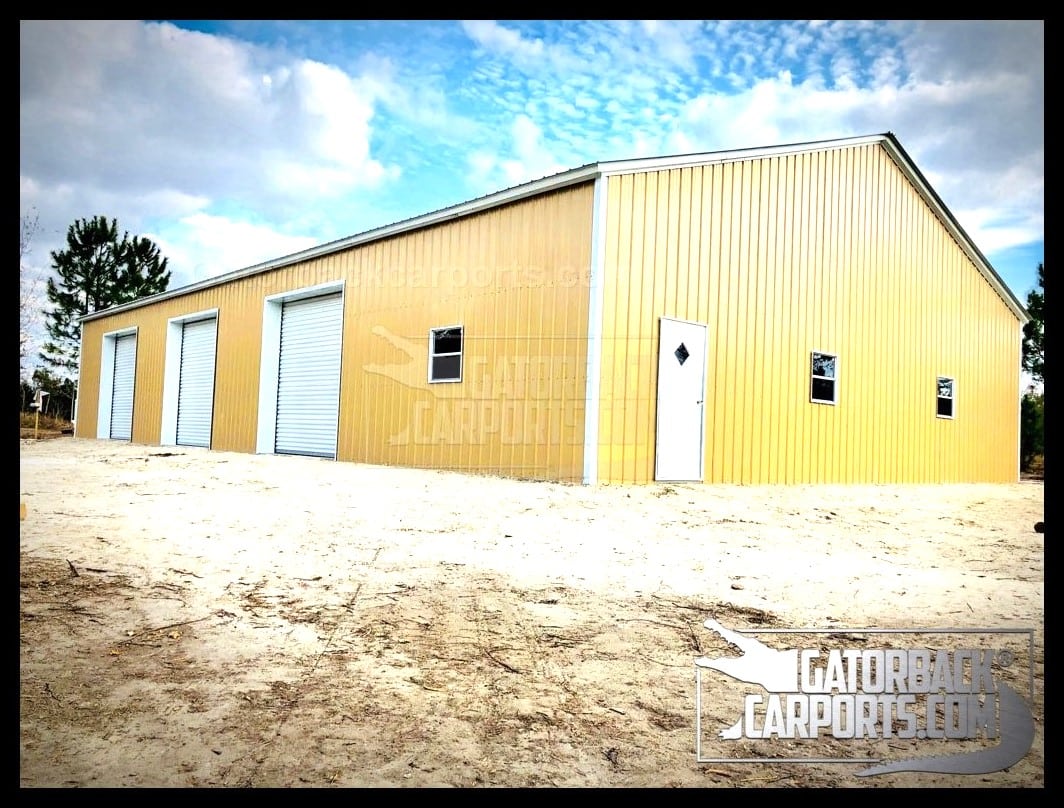 5.) 36′ X 40′ Commercial Building Price $ 9680 + Side Leg Height ( 10 Feet )$ 1200 for 12 Guage ( 40 L )$ 1100 + Both Sides enclosed at $ 1630 + Walk-In Door 36×80 (1)$ 185 + Closed Ends (Front End)$ 2480 + Closed End (Rear End) $ 2480 + 10 x 10 Garage Doors (1)$ 450 = Total Price $ 19,205