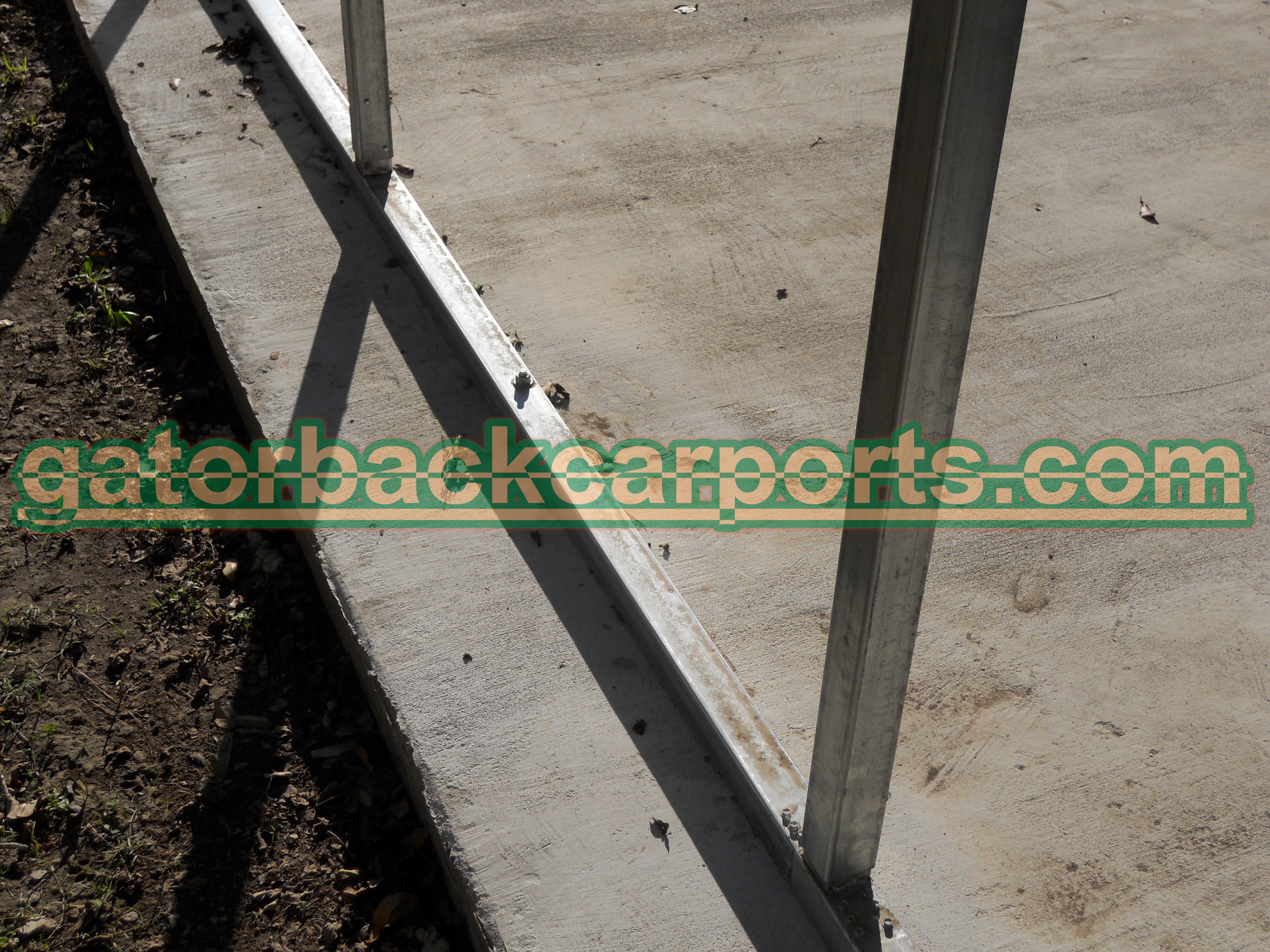 Pictured below are shots of the horizontal base runner which is bolted into the concrete for a carport these pictures are not normal garage applications therefore they are not installed inside a brick ledge. It is not necessary to build a brick ledge for a carport.