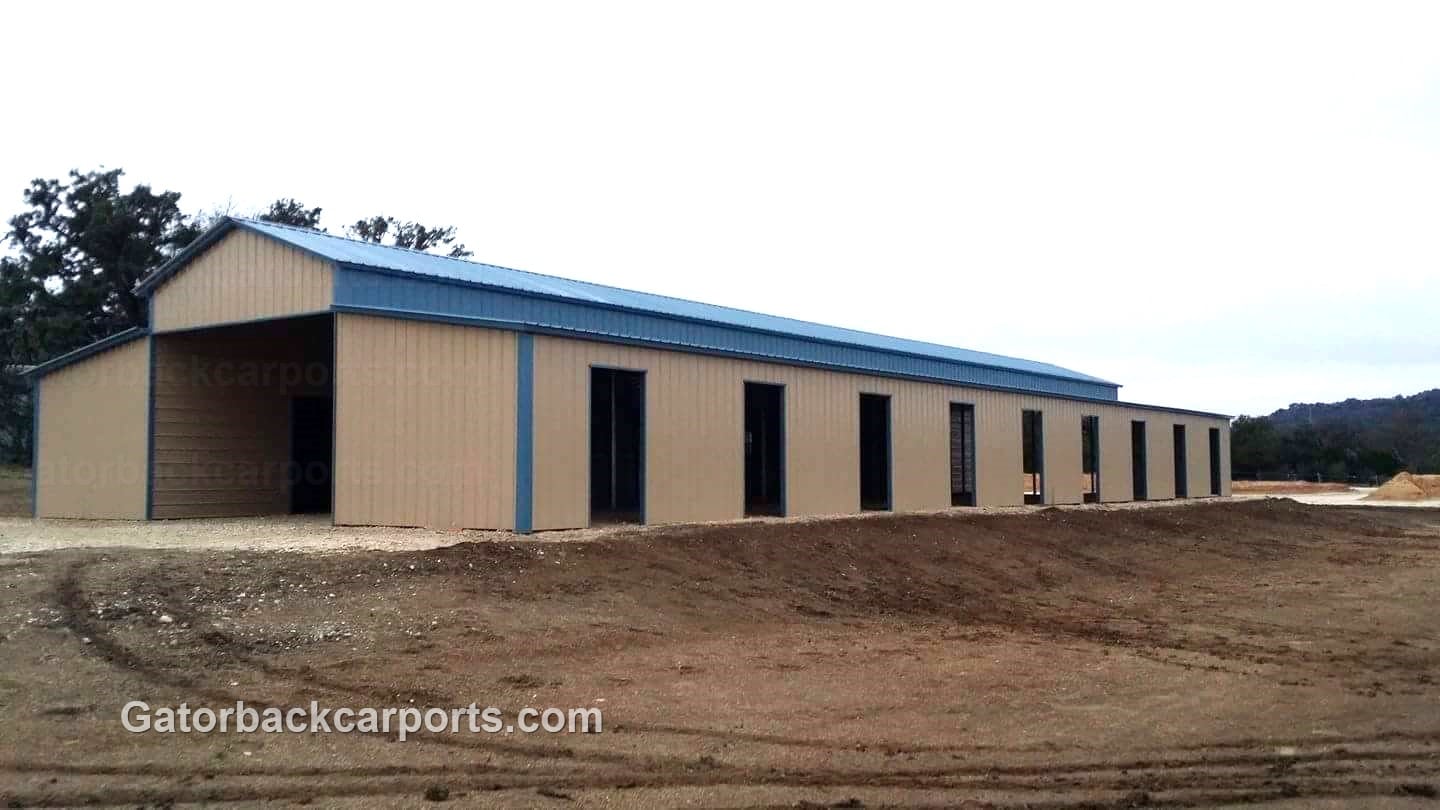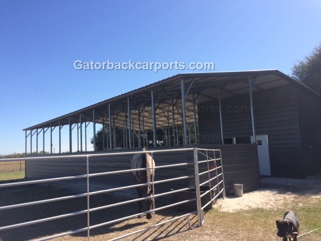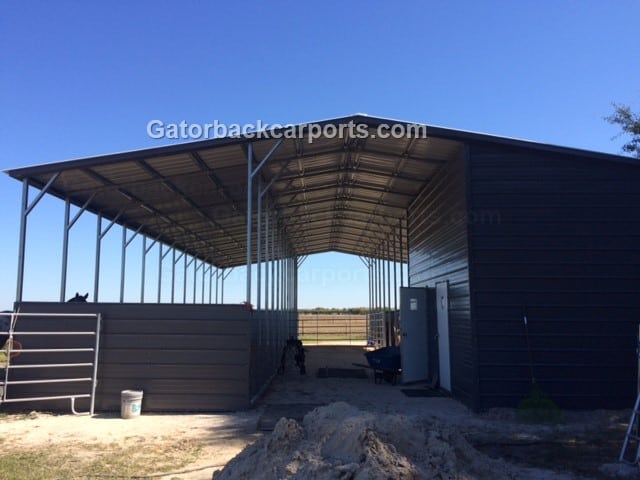 Here’s the fastest, and most affordable way to have your barn with horse stalls built. This prefabricated metal horse stall barn is a favorite because of it’s quality features. The steel barn comes with a roof line which provides excellent lighting and air flow for your family of horses. The stalls are wide enough for comfort for all breeds of horses including your American Quarter Horse, American Saddle bred, Appaloosa, and ponies will find these barns comfortable as well.