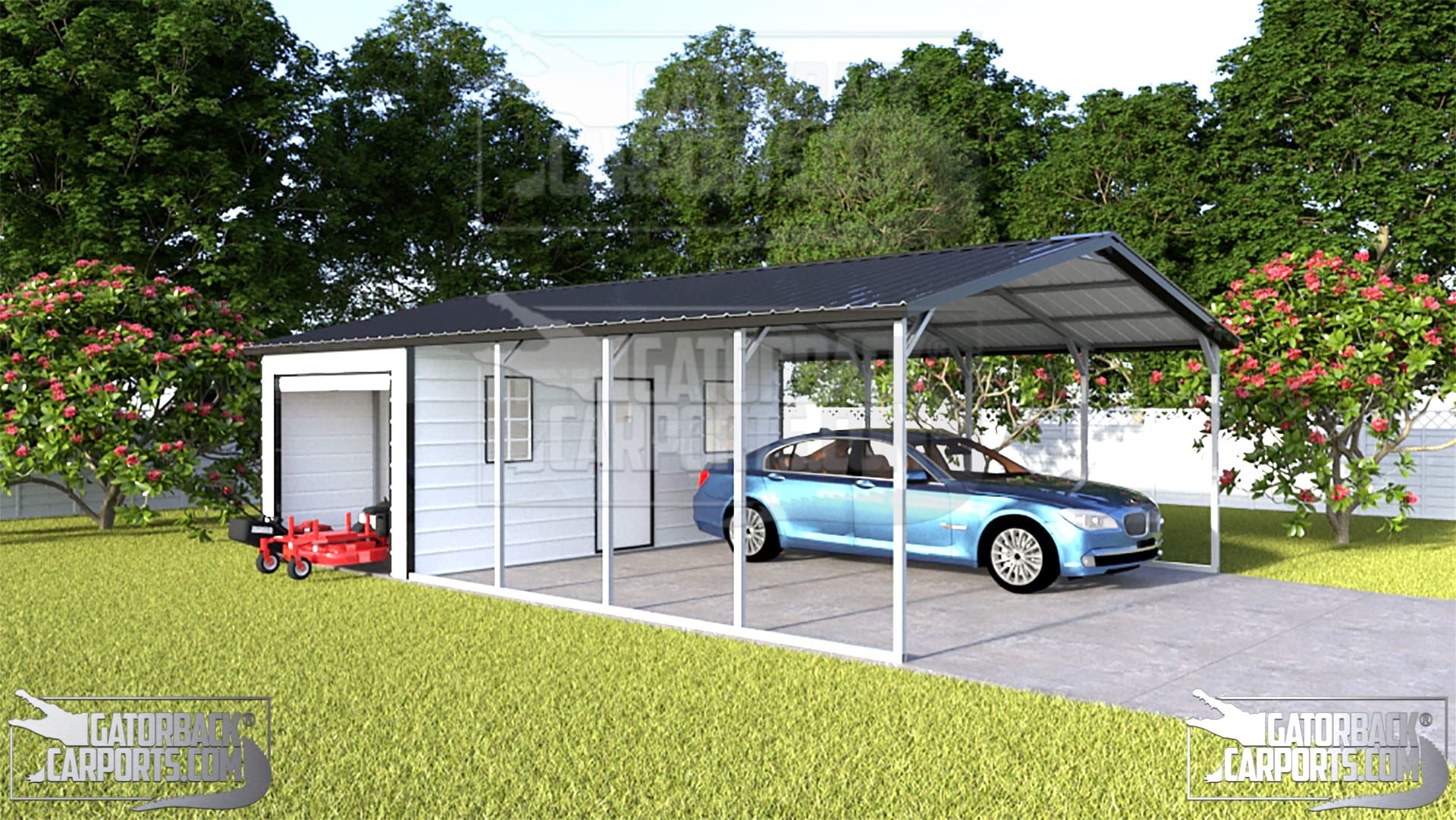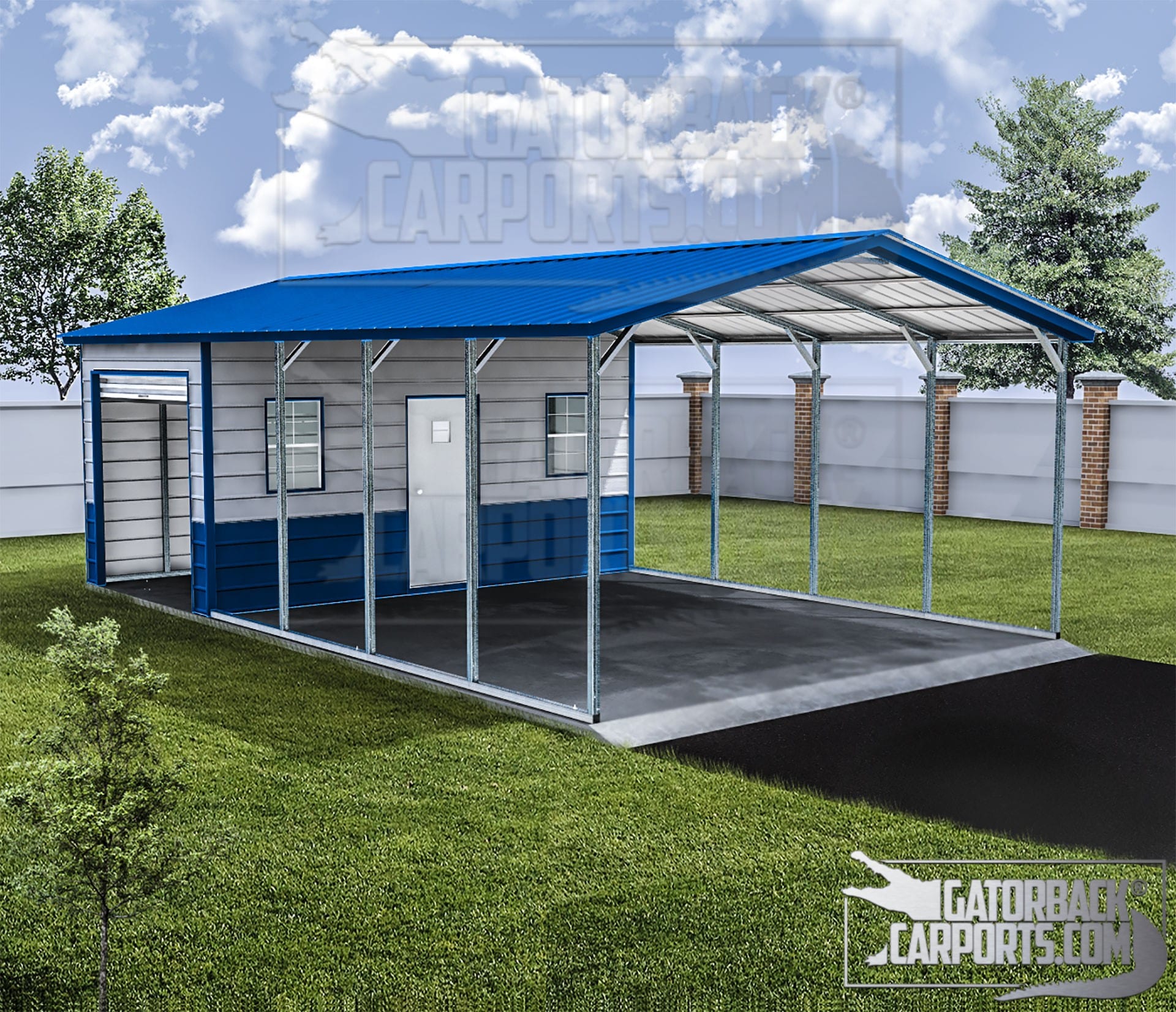 Our Regular Style Metal Carport Combo Units are made of high quality steel and are durable, strong, and made to last. Gatorbackcarports.com Metal Combo Units are tougher than other buildings made of wood or lesser metals like aluminum because steel does not deteriorate like wood in the long run, and steel also bears loads and endures the southern humidity much better than wood.