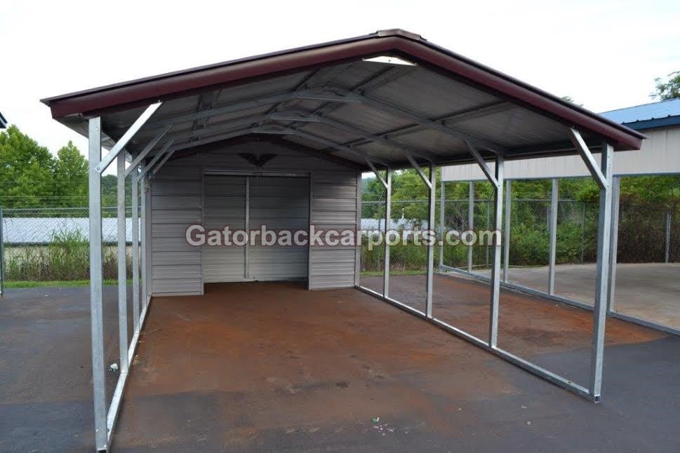 12 x 26 Combo Unit Vertical Roof | 12 x 31 Combo Unit Vertical Roof | 12 x 36 Combo Unit Vertical Roof |  |  |  | Standard Features: V Roof, 6′ side Legs 5′ On Center & 2′ Center Brace on each bow, 8′ center height One 6′ x 6′ Roll-Up Door, 5′ Enclosed Storage, 14 Gauge Frame, side panels extra cost | Standard Features: V Roof, 6′ side Legs 5′ On Center & 2′ Center Brace on each bow, 8′ center height One 6′ x 6′ Roll-Up Door, 5′ Enclosed Storage, 14 Gauge Frame | Standard Features: V Roof, 6′ side Legs 5′ On Center & 2′ Center Brace on each bow, 8′ center height One 6′ x 6′ Roll-Up Door, 5′ Enclosed Storage, 14 Gauge Frame | Option: you may add 5′ extra storage space for only $125 | | CALL FOR PRICE additional options are: windows $150 each, walk in doors $185 each, extra side panels, 12 Gauge Framing, anchors, and a variety of colors including special color match package | | | | CALL FOR PRICE | CALL FOR PRICE | | additional options are: windows $150 each, walk in doors $185 each, extra side panels, 12 Gauge Framing, anchors, and a variety of colors including special color match package | additional options are: windows $150 each, walk in doors $185 each, extra side panels, 12 Gauge Framing, anchors, and a variety of colors including special color match package | | | | | | 12 x 41 Combo Unit V Roof Standard Features: V Roof, 6′ side Legs 5′ On Center & 2′ Center Brace on each bow, 8′ center height One 6′ x 6′ Roll-Up Door, 5′ Enclosed Storage, 14 Gauge Frame, side panels extra cost